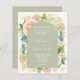 Les invitations de mariage tout-en-un vert Sage présentent vos détails sur le devant en lettres chic avec de belles fleurs d'aquarelle - hydrangées blanches et vertes, roses roses et crème, marguerites, petites tiges et feuilles - et un code QR à votre site mariage sur le dos. Imprimé sur papier de 110 lb de 4,5 po x 5,6 po à un prix abordable. **Les ENVELOPPES BLANCHES représentent un coût supplémentaire. Le service de design en direct peut vous aider à organiser votre design ou vos couleurs si nécessaire. CORRESPONDRE des articles dans notre magasin.