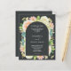 Les invitations de mariage tout-en-un présentent vos détails sur le devant et le dos en lettres blanches chic. Belles fleurs d'aquarelle - hydrangées blanches et vertes, roses roses et crème, marguerites, petites tiges et feuilles - sur le devant avec vos informations sur une couverture voûtée couleur onyx. Imprimé sur papier abordable de 110 livres. **Les ENVELOPPES BLANCHES représentent un coût supplémentaire. Le service de design en direct peut vous aider avec votre disposition de conception ou de couleurs si nécessaire. CORRESPONDRE des articles dans notre magasin.