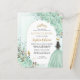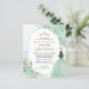 Floral Dusty Vert clair Princesse Gown Robe Parties scintillant étincelante Tiara Couronne papillon 15e anniversaire Quinceanera Invitation