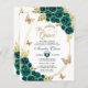 Floral Emerald Gold Tiara Butterfly Mis Quinceañera Invitation