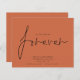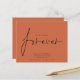 Budget Décidé sur Forever QR code Terracotta Enregistrer la date Un prix budget PLUS PETIT 4.5" x 5.6" alternative. Disponible dans un STOCK SEMI-GLOSS 110 lb CARD qui est l'option par défaut (plus épais pour les invitations), OU un STOCK SATIN FINISH 80 lb THINNER PAPER (idéal pour les boîtiers). Ajoutez votre code QR à votre site Web mariage au verso. Un script stylé est au centre.Le reste du texte que vous pouvez facilement personnaliser. Les couleurs du texte et de l'arrière - plan peuvent être modifiées si vous souhaitez mieux convenir à votre thème mariage via l'option customiser plus loin.