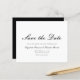 Ce mariage formel élégant, à l'exception de la carte date, comporte un élégant script noir et de petites polices de majuscules sur un arrière - plan blanc. L'inverse est noir.