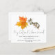 Fun My Cat J'ai Moved Script New Home. Un prix économique PETIT 4,5 po x 5,6 po alternatif. Disponible dans un STOCK CARTE SEMI GLOSS 110 lb qui est l'option par défaut (recommandé pour les invitations, similaire à l'épaisseur d'une carte postale), OU un STOCK PAPIER THINNER SATIN FINISH 80 lb (idéal pour les boîtiers). Les enveloppes sont en option et légèrement plus grandes que la taille de la carte. Le script de style d'écriture à la mode est My Cat And I Have Moved, et chat mignon s'accrochant à une illustration de feuille d'automne. Personnalisez facilement le reste du texte en bas avec vos détails.