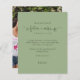 Futur Mme Fête des mariées Photo Sage Green Merci. Un prix économique PETIT 4,5 po x 5,6 po alternatif. Disponible dans un STOCK CARTE SEMI GLOSS 110 lb qui est l'option par défaut (recommandé pour les invitations), OU un STOCK PAPIER THINNER SATIN FINISH 80 lb (idéal pour les boîtiers). Les enveloppes sont en option et légèrement plus grandes que la taille de la carte. The Future Mrs est dans un jeu d'artsy script avec anneau fiançailles et motifs de coeur et le reste du texte que vous pouvez facilement personnaliser. Remplacez l'exemple de photo au dos par une photo amusante de votre événement.