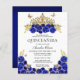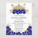 Elégante Glam Blue Floral Gold Tiara Quinceanera Invitation