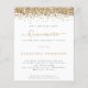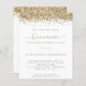 Glam Gold Parties scintillant Quinceañera Invitation. Un prix économique PETIT 4,5 po x 5,6 po alternatif. Disponible dans un STOCK CARTE SEMI GLOSS 110 lb qui est l'option par défaut (recommandé pour les invitations), OU un STOCK PAPIER THINNER SATIN FINISH 80 lb (idéal pour les boîtiers). Les enveloppes sont en option et légèrement plus grandes que la taille de la carte. Les bordures de parties scintillant en or Faux sont en haut de chaque côté, et Quinceañera est dans un script de style manuscrit. Personnalisez facilement le texte à vos propres détails. Vous pouvez également modifier le texte et les couleurs arrière - plans via l'option customiser plus si vous le souhaitez.