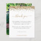 Parties scintillant d'or Photo Quinceanera Merci. Un prix économique PETIT 4,5 po x 5,6 po alternatif. Disponible dans un STOCK SEMI-GLOSS 110 lb CARD qui est l'option par défaut (plus épais pour les invitations), OU un STOCK SATIN FINISH 80 lb THINNER PAPER (idéal pour les boîtiers). Les enveloppes sont en option et légèrement plus grandes que la taille de la carte. Après votre célébration dites merci avec ce design élégant. Une fausse bordure de parties scintillant en or est en haut, et le Merci est dans un script élégant. Personnalisez facilement le texte à vos propres détails. Sur le dos échange dans votre photo préférée de votre parti d'orientation portrait.