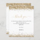 Budget Gold Parties scintillant White 2024 Graduation Merci. Un prix économique plus petit (4.5 x 5.6") semi-brillant qui est un stock de carte de 110 gsm, semblable en épaisseur à une carte postale. REMARQUE : ONE par feuille. D'élégantes bordures de confettis en faux parties scintillant doré sont en haut et en bas et aussi à l'arrière. Personnalisez facilement le texte à vous.