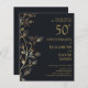 Cette invitation élégante, noire et or fleurie 50ème anniversaire mariage peut être personnalisée avec votre information dans la typographie dorée moderne. Conçu par Thisisnotme©