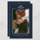 Inexpensive Cheap Golden Flourish Classic Ornament Photo Navy Blue Wedding Invitation Card with Envelope.
