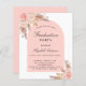 Un cadre en arc décoré d'or rose et de fleurs roses rousses, roses et gazon de pampas. Personnalisez et ajoutez un nom et des détails.