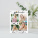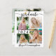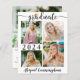 Un faire-part de graduation moderne et économique en noir et blanc imprimé sur un papier léger de 4,5 x 5,6 po au lieu de cartable avec typographie de script de calligraphie et un capuchon de graduation en feuille d'or métallique et personnalisé avec 5 photos (collage photo de quatre images sur le devant et une sur le dos). L'année de classe est modifiable pour les autres années. Le verso comprend une photo à fond vidé et un champ de texte optionnel pour votre texte personnalisé avec des détails sur votre diplômé. Idéal pour les budgets conservateurs et/ou l'exécution manuelle. Enveloppes vendues séparément sur la page de commande. ASSISTANCE : Pour obtenir de l'aide sur la modification/personnalisation de la conception, le changement de couleur, le transfert de la conception vers un autre produit ou si vous souhaitez coordonner des éléments, contactez le concepteur AVANT DE COMMANDER via Zazzle Conversation ou makeitaboutyoustore@gmail.com.