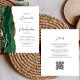 The left-hand edge of this elegant modern wedding invitation features an emerald green watercolor agate border trimmed with faux gold glitter. The customizable text combines charcoal gray script and sans serif fonts on a white background. The reverse side provides space for wedding details on a solid white background, along with a QR code guests can scan to visit your website and RSVP, which saves the cost of printing and mailing separate RSVP cards.