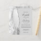 Le bord gauche de cette élégante faire-part de mariage moderne est orné d'une bordure en aquarelle grise et blanche ornée d'une parties scintillant en faux argent. Le texte personnalisable combine écriture manuscrite, copperplate et polices italiques en gris fusain sur un arrière - plan gris clair. L'envers est assorti d'un design d'agate gris, blanc et argent.