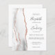 Le bord gauche de cette élégante faire-part de mariage moderne est orné d'une bordure en aquarelle grise et blanche, bordée d'une parties scintillant en or rose. Le texte personnalisable combine écriture manuscrite, copperplate et polices italiques en gris fusain sur un arrière - plan blanc. L'envers offre de l'espace pour les détails du mariage, ainsi qu'un code QR que les clients peuvent scanner pour visiter votre site Web et RSVP, ce qui permet d'économiser le coût d'impression et d'envoi de cartes RSVP séparées. REMARQUE : Les enveloppes ne sont pas automatiquement incluses dans ces invitations budgétaires, alors n'oubliez pas de choisir l'option "enveloppes blanches" !