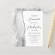 Le bord gauche de cette élégante faire-part de mariage moderne est orné d'une bordure en aquarelle grise et blanche ornée d'une parties scintillant en faux argent. Le texte personnalisable combine le script gris charbon et les polices sans serif sur un arrière - plan blanc. L'envers présente une conception d'agate correspondante.