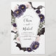 Budget Halloween 31 Octobre Automne Automne Couleur d'eau foncée Purple et Vert Mariage Invitations sur arrière - plan noir - comprend hantante et effrayante typographie de script élégant avec des fleurs modernes et Bat Wings pour la célébration spéciale de mariage Déplaisant.
