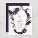 Budget Halloween 31 Octobre Automne Automne Couleur d'eau foncée Purple et Vert Mariage Invitations sur arrière - plan noir - comprend hantante et effrayante typographie de script élégant avec des fleurs modernes et Bat Wings pour la célébration spéciale de mariage Déplaisant.