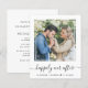 Une faire-part de mariage simple et chic pour le budget. L'avant présente votre photo dans un cadre carré découpé, "heureux toujours après" écrit dans un script chic avec des swashes et vos prénoms et date mariage dans la typographie moderne. Au contraire, personnalisez votre invitation en typographie élégante.