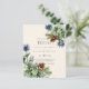 De beaux feuilles d'Eucalyptus, des fleurs de chardon bleu, du feuillage vert sauge, des cônes de pin figurent sur ces objets de mariage d'hiver. Une partie d'une collection plus grande qui comprend des invitations à des mariages à prix réduit, des dates de remise, des RSVP, des remerciements aux cartes photos, des cadeaux de mariage et de mariage, et plus encore. Pour une planification de mariage d'hiver détaillée GRATUITE, consultez le guide weddingdesignchic.com.