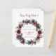 Rustique moderne élégant mariage d'hiver élégant à prix abordable enregistrer le modèle date sur un arrière - plan blanc simple avec une couronne d'aquarelle de roses bordeaux et blancs de pivoine, pics saisonniers de pin vert de pin, branches de sapin, baies rouges et feuillage. +++++++++++ La carte est adaptée aux élégants mariages de Noël rustiques modernes d'hiver. +++++++++++ VEUILLEZ LIRE CECI AVANT D'ACHETER ! Il s'agit d'une carte de mariage abordable et économique imprimée sur une feuille papier (chaque feuille comporte une carte). ++++ Pour un rapport qualité-prix optimal, notre conseil est de choisir le type de papier Semi-Gloss (il est assez épais pour être utilisé pour la papeterie) ++++ Si vous avez besoin d'enveloppes, choisissez l'OPTION ENVELOPE. +++ Vérifiez toutes les informations et l'orthographe de votre texte car vous recevrez exactement ce que vous voyez - personne d'autre ne vérifiera quoi que ce soit avant l'impression. ++++ Cette carte est conçue pour la taille 4,5" x 5,6". Dans le coque vous choisissez une autre taille de la carte et le texte sort de la page, tout doit être corrigé avant d'ajouter le produit au panier. Demandez de l'aide au service Live Design.