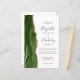 The left-hand edge of this elegant modern wedding invitation features a hunter green watercolor agate border trimmed with faux gold glitter. The customizable text combines charcoal gray handwriting, copperplate and italic fonts on a white background. Add additional details on the back, along with a QR code to help your guests visit your wedding website.