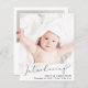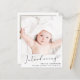Une option économique pour annoncer la naissance de votre bébé, avec sa photo avec "Introduction" sur le dessus dans un script élégant avec un battement de coeur. En dessous, ajoutez son nom, sa date de naissance et ses statistiques de naissance. Au verso, ajoutez une autre photo et un message personnalisé.