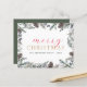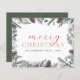 Budget Rustic Winter Joyeux Noël avec Holiday Dusty Blue, vert et Brown vert, Pine Tree Branches, Pinecones et Arrière - plan simple.