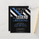 Cette conception comprend un drapeau de la police avec des rayures noires et blanches, ainsi qu'une fine bande bleue. Le texte "La légende prend sa retraite" s'applique avant tout aux détails du parti pour l'officier de l'application de la loi, le shérif, le capitaine ou les chefs du parti de retraite qui prend sa retraite.