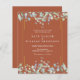 Verdure aquarelle florale sauge lilas budget avec de jolis feuilles sauge et lilas qui tombent sur un élégant cadre doré renfermant vos détails mariages ensemble dans un texte élégant classique sur un arrière - plan en terre cuite. Conçu par Thisisnotme©