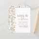 Célébrez l'amour en pleine floraison avec notre Invitation Fleur sauvage de douche nuptiale "Love is in Bloom". Décorée de fleurs sauvages vibrants et d'une verdure délicate, cette invitation saisit l'essence de la romance et de la beauté naturelle. Qu'il s'agisse d'un rendez-vous intime ou d'une affaire somptueuse, les teintes pastel douces et les détails floraux complexes créent un cadre charmant pour honorer la future mariée. Chaque invitation est soigneusement conçue pour évoquer le sentiment enchanteur de floraison d'amour, afin que les invités ressentent la chaleur et la joie de l'occasion dès qu'ils le reçoivent. Customisez le texte pour y inclure des détails essentiels tels que la date, l'heure et l'emplacement, et laissez la magie des fleurs sauvages préparer le terrain pour une douche nuptiale mémorable. Avec son design intemporel et son sentiment sincère, notre Invitation à la douche nuptiale Fleur sauvage "L'amour est en fleurs" promet de créer des souvenirs chéris pour la mariée et ses proches.
