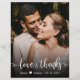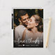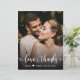 Budget Moderne Mariage Écrit à la main Photo "Amour et merci" script Merci Cartes. Moderne mariage élégant modèle de carte de remerciements avec une photo verticale complète sur le devant avec le texte superposé "Amour et merci" dans une belle tourbillonnant police de script de calligraphie lettrée avec des swashes en blanc sur l'image. Ajoutez votre nom personnalisé et un message de remerciement. Si vous préférez écrire votre note à la main, supprimez simplement l'exemple de texte pour gagner de l'espace. Si vous avez besoin d'aide, veuillez contacter designer!