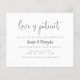 Oups ! Des circonstances imprévues se produisent, et quand elles le font, vous pouvez facilement faire savoir à vos invités d'une manière amusante et facile que vous avez besoin de reporter votre date de mariage avec cette carte minimaliste de report mariage noir et blanc. Avec "l'amour est patient" dans une police de calligraphie chic avec une typographie serif classe. Dans le cadre de la sélection du budget ici sur Zazzle, ces invitations ne sont pas fournies avec des enveloppes et ne s'insèrent pas dans une enveloppe de taille standard. La taille la plus proche est A6 mais il y aura un écart d'environ un demi-pouce. Si vous n'avez pas peur du manque de douceur, vous pourriez utiliser des enveloppes A6 aussi largement disponibles. Sinon, cette conception peut être transférée dans un format standard 5x7 (avec enveloppes) à l'aide de l'outil de transfert de conception. À titre d'exemple, au moment de la rédaction du présent document, 100 invitations budgétaires (y compris une remise sur le volume) coûteraient environ 39 $, alors que 100 invitations standards 5x7, y compris des enveloppes, coûteraient environ 135 $. Votre kilométrage peut varier en fonction des codes promo disponibles de Zazzle, des ventes à l'échelle du site ou des changements de prix.