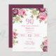 Customizable affordable paper 90th birthday invitations, featuring pretty watercolor roses, anemones et clematis. En tones of magenta, pinks, purples et creams.