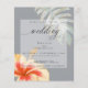 Prix abordable Rustic Tropical Watercolor Hibiscus and Foliing Faire-part de mariage | NOUVEAU ! Invitations de mariage léger et abordable - une fleur de corail clair et d'hibiscus tropical jaune et une feuille de philodendron à feuilles cassées ornent les deux coins en diagonale, bordés d'or brillant, le tout posé sur un arrière - plan gris moyen avec une couverture blanche pure pour que le texte soit facilement lu et tout en permettant au design de montrer - belle calligraphie manuscrite - facile à customiser modèle original ©WhimsicalArtwork™ pour la BarefootBride ™. Cela fait partie de notre collection de mariages Aquarelle Tropical Hibiscus ainsi que Baby shower, Anniversaire et Christening Invitations. Pour toute question ou assistance, veuillez contacter le concepteur indy.designer@yahoo.com.