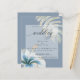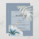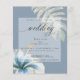 Prix abordable Rustic Tropical Watercolor Hibiscus and Foliing Faire-part de mariage | NOUVEAU ! Invitations de mariage léger abordable - une fleur d'hibiscus tropicale bleu poussiéreux et une feuille de philodendron à feuilles fendues décorent les deux coins en diagonale, bordée d'or brillant, le tout posé sur un arrière - plan bleu poussiéreux avec une couverture blanche pure pour que le texte soit facilement lu et tout en permettant au design de montrer - belle calligraphie manuscrite - facile à customiser modèle original ©WhimsicalArtwork™ pour la BarefootBride ™. Cela fait partie de notre collection de mariages Aquarelle Tropical Hibiscus ainsi que Baby shower, Anniversaire et Christening Invitations. Pour toute question ou assistance, veuillez contacter le concepteur indy.designer@yahoo.com.
