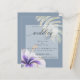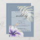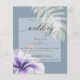 Prix abordable Rustic Tropical Watercolor Hibiscus and Foliing Faire-part de mariage | NOUVEAU ! Invitations de mariage léger et abordable - une fleur d'hibiscus tropicale violet lilas et une feuille de foune et une feuille de philodendron à feuilles cassées ornent les deux coins en diagonale, bordée d'or brillant, le tout posé sur un arrière - plan bleu poussiéreux avec une couche de blanc pur pour que le texte soit facilement lu et tout en permettant le design à travers - belle calligraphie manuscrite - facile à customiser modèle - design original par ©WhimsicalArtwork™ pour la BarefootBride ™. Cela fait partie de notre collection de mariages Aquarelle Tropical Hibiscus ainsi que Baby shower, Anniversaire et Christening Invitations. Pour toute question ou assistance, veuillez contacter le concepteur indy.designer@yahoo.com.