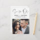 Budget moderne et élégant script manuscrit photo Enregistrer la carte Mariage de date. La carte d'invitation à la date de sauvegarde comprend une typographie chic et élégante avec un design simple et minimaliste sur un arrière - plan blanc que vous pouvez ajouter votre photo de fiançailles customisé à.