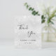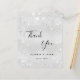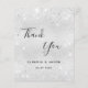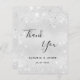 Un carte de remerciements mariage. Une couleur arrière - plan à l'aspect métallique faux argenté. Avec de la poussière de parties scintillant fausse. A l'avant, un grand script écrit à la main et le texte : Merci, vos noms et une date. Retour : personnalisez et ajoutez Votre note de remerciement et vos noms.