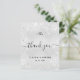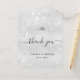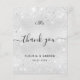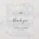Un carte de remerciements mariage. Une couleur arrière - plan à l'aspect métallique faux argenté. Avec de la poussière de parties scintillant fausse. Sur le devant, un script écrit à grande main et le texte : Merci, vos initiales monographiques, les noms et une date. Retour : personnalisez et ajoutez Votre note de remerciement et vos noms.
