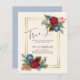 Beau Turquoise bleu turquoise (bleu paon) et bordeaux, Roses couleur vin, feuilles vert sauge, cônes de pin rustique, et un cadre doré sur cet objet de mariage d'hiver qui fait partie d'une collection plus grande qui comprend des invitations à des mariages à budget, à sauver les dates, RSVPs, étiquettes, cadeaux, papeterie, et plus. Pour une planification de mariage d'hiver GRATUITE, consultez le guide weddingdesignchic.com.
