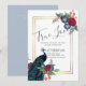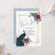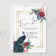 Magnifique paon avec des fleurs sarcelle et bleues, bordeaux, et feuilles vert sauge sur ces articles de mariage d'automne et d'hiver. Partie d'une plus grande collection qui comprend des invitations de mariage à petit budget, des faire-part, des RSVP, des cartes photo de remerciement, des cadeaux pour la mariée et le cortège, et plus encore. Pour un guide détaillé et GRATUIT de planification de mariage d'hiver, visitez weddingdesignchic.com.