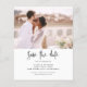 Budget Mariage Sauvegardez les Cartes de dates qui ont une photo sur le devant et le dos. Les cartes Save the Date contiennent une typographie de script moderne, lettrée à la main, qui sont élégantes, simples et modernes à utiliser après que vous minimaliste simple célébration de mariage.