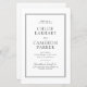 Faire-part de mariage classique minimaliste qui dispose de deux bordures carrés en utilisant la typographie serif et le monogramme à l'arrière.