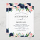Budget Navy Blue and Blush Pink Moderne et élégante aquarelle florale Printemps Invitations - comprend une belle et élégante typographie script avec des fleurs botaniques modernes et la verdure pour la célébration spéciale de mariage.