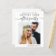 Elopement moderne et chic pour un budget abordable ou petit faire-part mariage et réception enregistrer la date avec votre photo et "Save The Date For Our Happily Ever After Party" dans un mélange de typographie simple et de script tendance avec swashes. Sous votre photo, ajoutez vos prénoms et la date et l'emplacement de la réception ; à l'envers, personnalisez votre faire-part mariage et vos informations de réception de manière plus détaillée. Ce papier semi-brillant budgétaire est similaire en poids au papier photo. Une version plus grande de 5x7 traditionnelle carte stock est également disponible (message nous pour le lien).