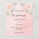 Un arrière - plan rose vif décoré de petits étincelles dorées, points. Fleurs roses, blanches et verdure d'eucalyptus. Personnalisez et ajoutez vos noms et détails. Lettres de couleur noire. Élégant script Retour : icônes de médias sociaux, code qr à votre site mariage. Cet invitation est également disponible dans notre magasin sans les icônes sur le dos.