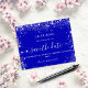 Un moderne et élégant Save the Date pour un mariage. Un arrière - plan royal de marine décoré avec de la poussière de parties scintillant en faux argent. Personnalisez et ajoutez une date et des noms. Le texte : Save the Date est écrit avec un grand script de style à la main tendance.