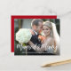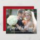 Pour un budget simple et chic faire-part de mariage de vacances. Votre photo de mariage préférée remplit l'avant, avec "Marié & Joyeux" superposé dans un script blanc élégant. Personnalisez avec votre salutation de Noël et vos noms.