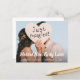 Un hébergement abordable ou une carte de faire-part mariage plus petite pour informer la famille et les amis que vos plans de mariage ont changé, et vous avez choisi ou réduit le nombre d'invités de votre mariage à un petit groupe intime, mais que vous allez accueillir une fête à l'avenir. Votre photo mariage remplit le devant de la carte, avec "Marié maintenant, Parti plus tard" écrit en haut dans un script blanc élégant. Vos prénoms et votre date de mariage sont en dessous. Au contraire, vous pouvez personnaliser votre message de manière plus détaillée.